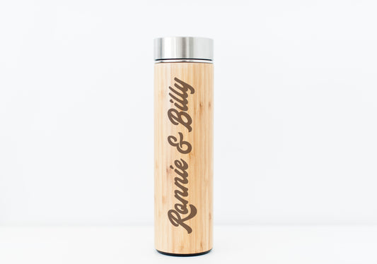 Personalized Bamboo Water Bottle Gift for Couple – Custom Wedding Gift with Names – Bride and Groom Eco Travel Tumbler