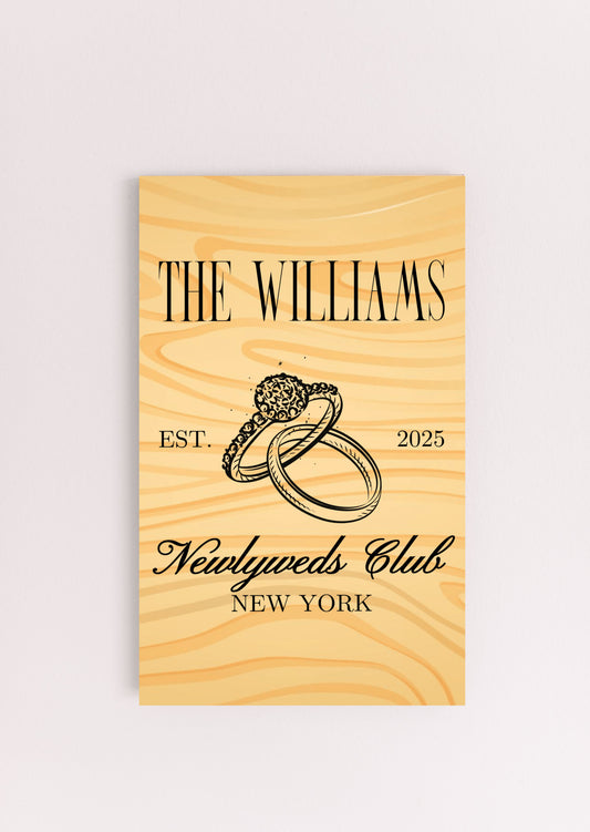 Newlyweds Club Personalized Custom Name and Date UV Printed MDF Sign - 6x10, Gift for Wedding, Gift for Poster, Gift for Couple, Couple Poster