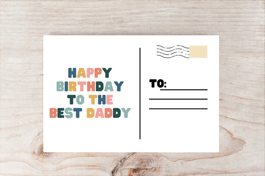 Personalized Happy Birthday Postcard for Dad – Cute Colorful Card for Daddy from Kids or Baby – Father's Birthday Gift