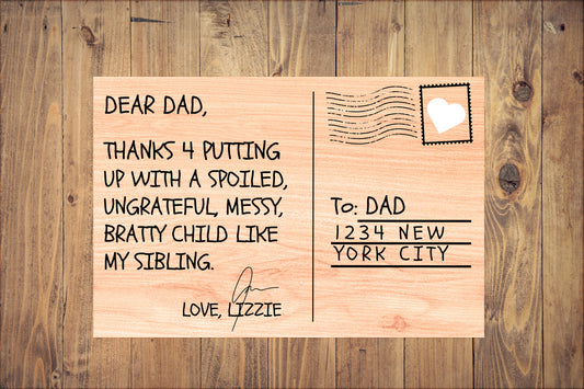 unny Wooden Postcard for Dad – Gift from Kids– Thanks for Dealing with My Sibling – Hilarious Father’s Day or Birthday Gift
