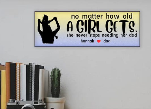 Personalized Father Daughter Sign – A Girl Never Stops Needing Her Dad – Custom Name Wall Plaque – Gift for Dad from Daughter