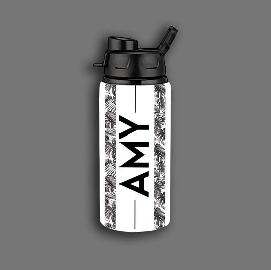 Custom Jungle Print Name Water Bottle – Tropical Leaf Monogram Bottle – Personalized Back to School, Travel or Gym Gift